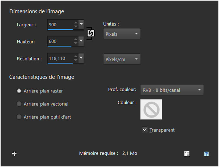 Ouvrir un calque de 900x600 px