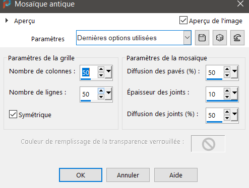 Effets/ Effets de textures / Mosaïque Antique…50*50*/50*10*50*/ symétrique coché