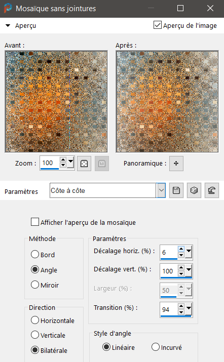 Effets/ Effets d’image / Mosaïque sans jointures… / par défaut