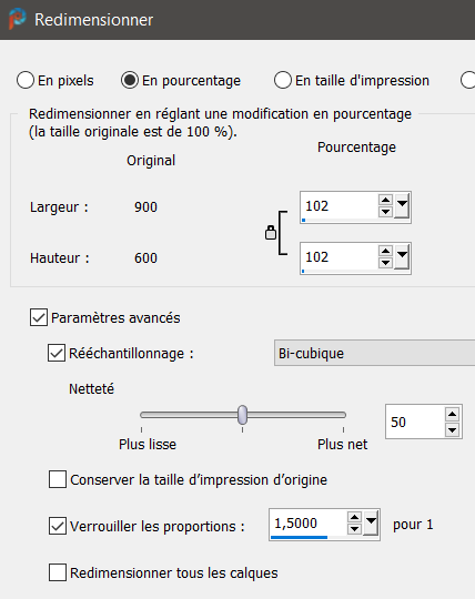 Toujours sur ce calque Raster2 / Redimensionner à 102 % tous les calques décochés