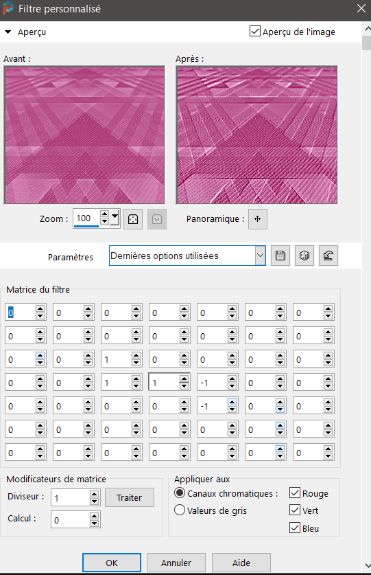 Filtres utilisés :