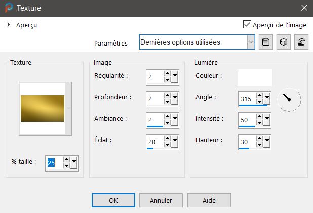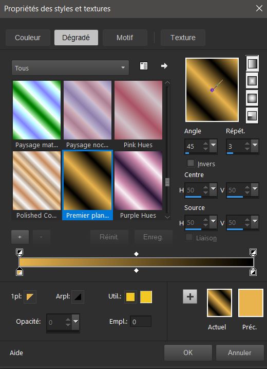 Préparer un dégradé Style linéaire / 45 / 3