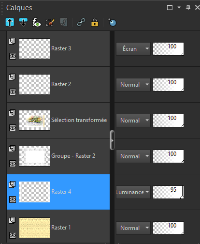 Mode Luminance /Opacité à 95 %/