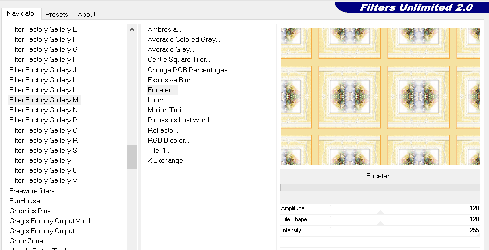 < Filtre Factory M , Faceter ...128..128..255 par défaut