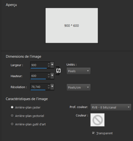 Ouvrir un calque transparent de 900/ 600 pixels