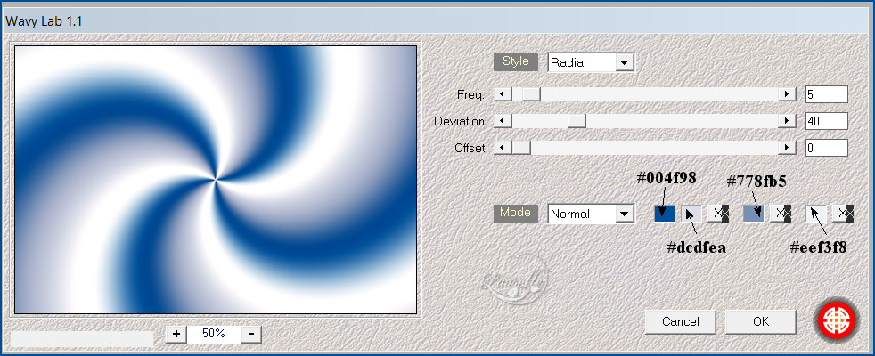 Radial / 5 40 / 0 / couleurs/ #004f98/#dcdfea/#778fb5/#eef3f8