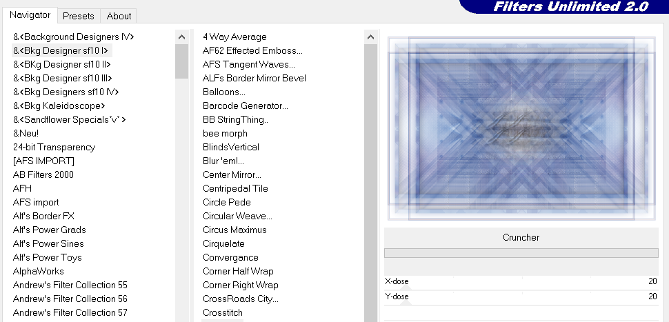 Effets / Modules externes / Filters Unlimited 2.0 / &Bkg Designer sf101 > Cruncher