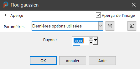 Réglage / Flou / Flou gaussien à 30 / Mode luminance héritée
