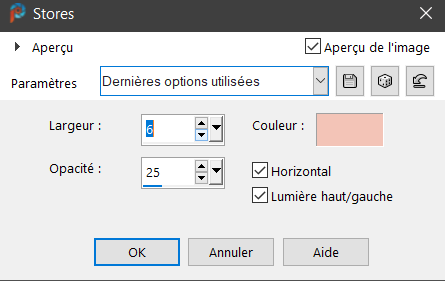 Effet / Effets de texture / Stores / L6 / Op 25 / H coché/ Lumière coché / Couleur 1