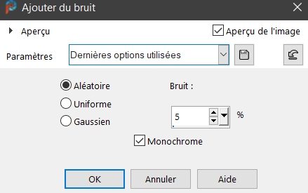 Réglages / Ajouter du bruit / Aléatoire 5% / Monochrome coché