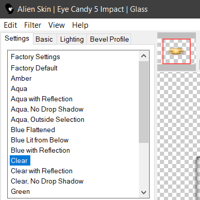 Effets / Modules externe / Alien Skin I Eye Candy 5 Impact I Glass / Clear