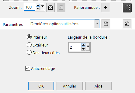 Sélectionner les bordures de la sélection à 2 pixels